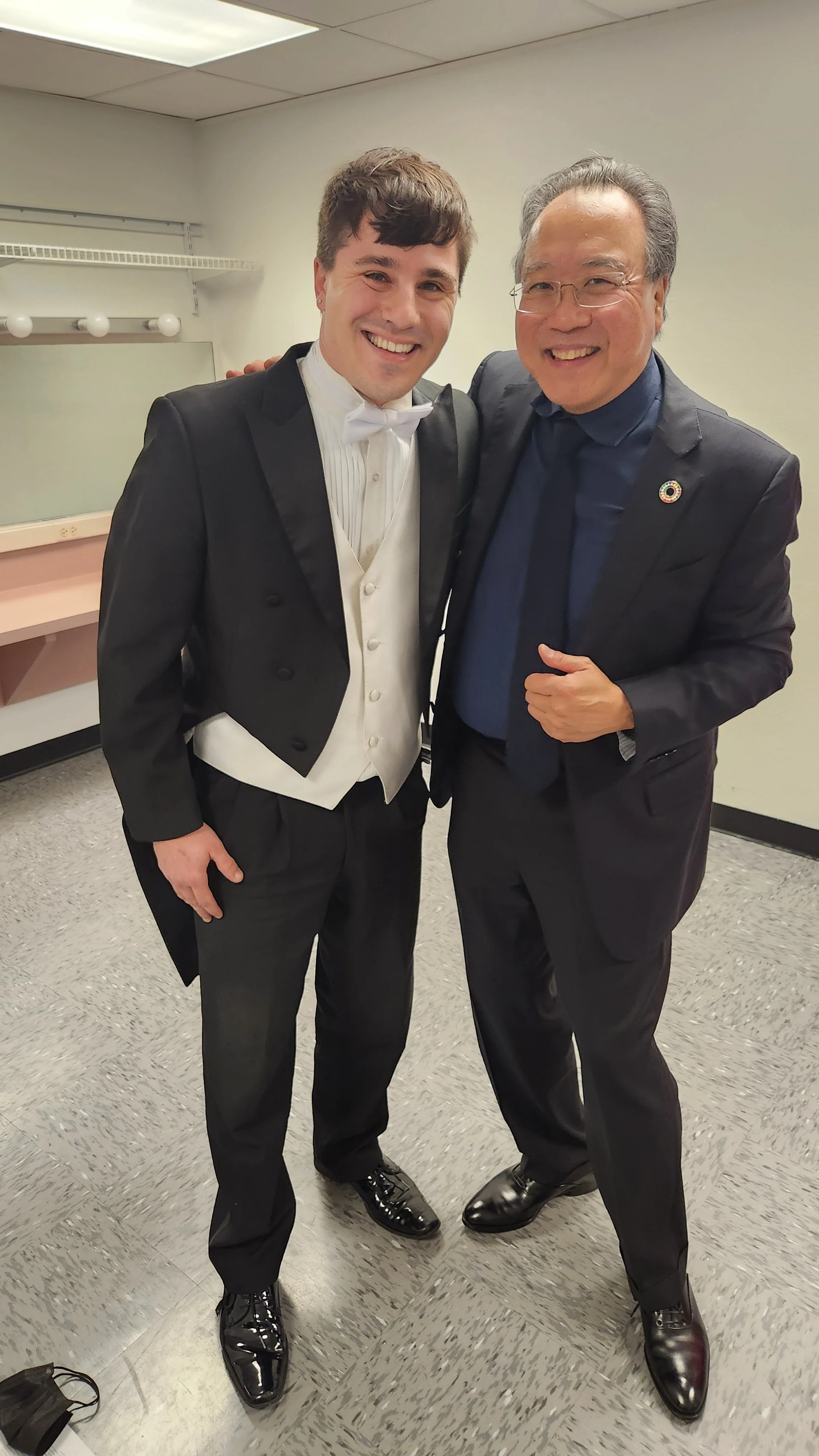 Trace Johnson and Yo-Yo Ma before a concert at Sarasota Orchestra